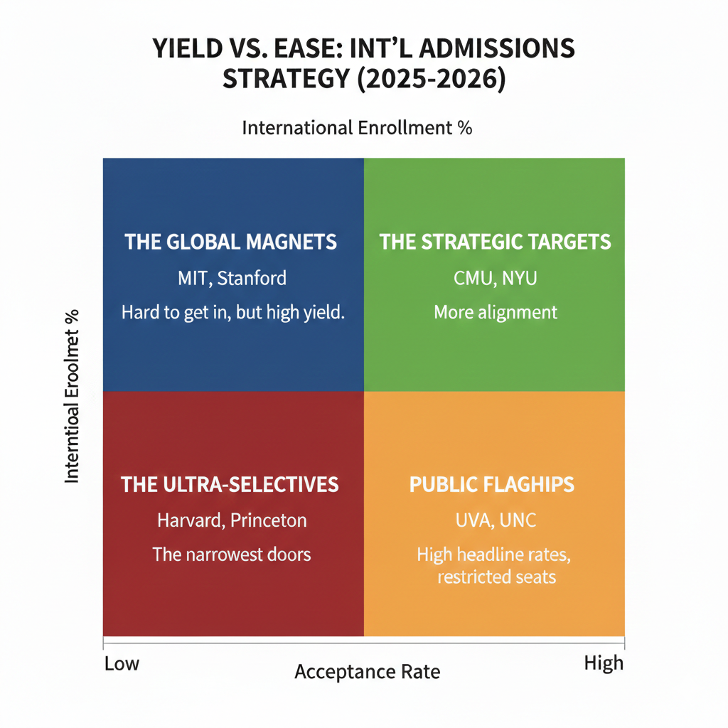 The takeaway for international applicants is clear: acceptance rates are signals, not promises. Successful international college lists are built by understanding how institutions actually admit and enroll international students—not by chasing the lowest headline percentage.